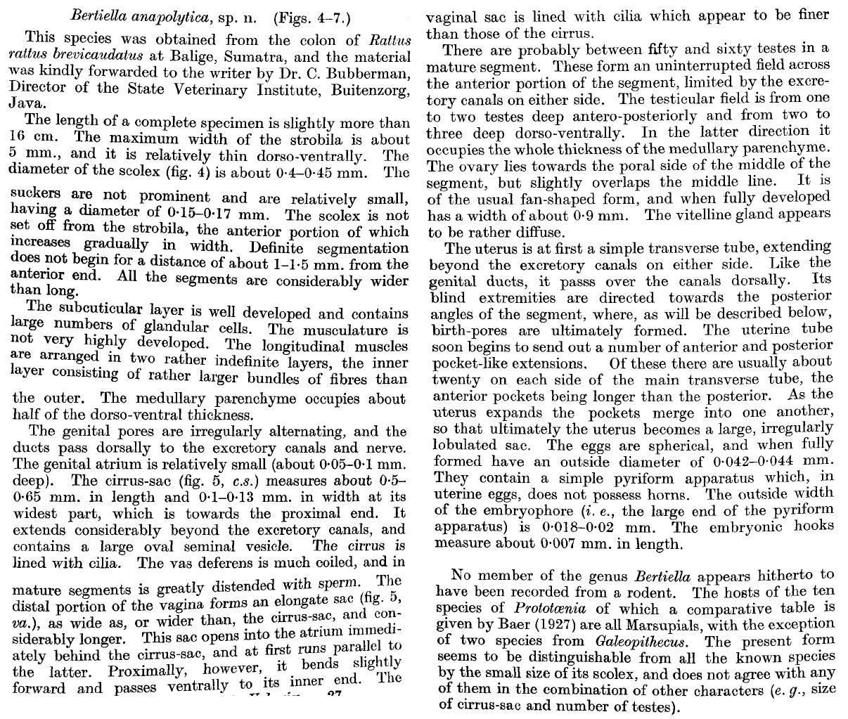 Baylis, H. A. 1934. Two new species of the cestode genus Bertiella, with a note on the presence of uterine pores. Annals and Magazine of Natural History (Ser. 10) 14: 412-421. (4821) Download PDF |