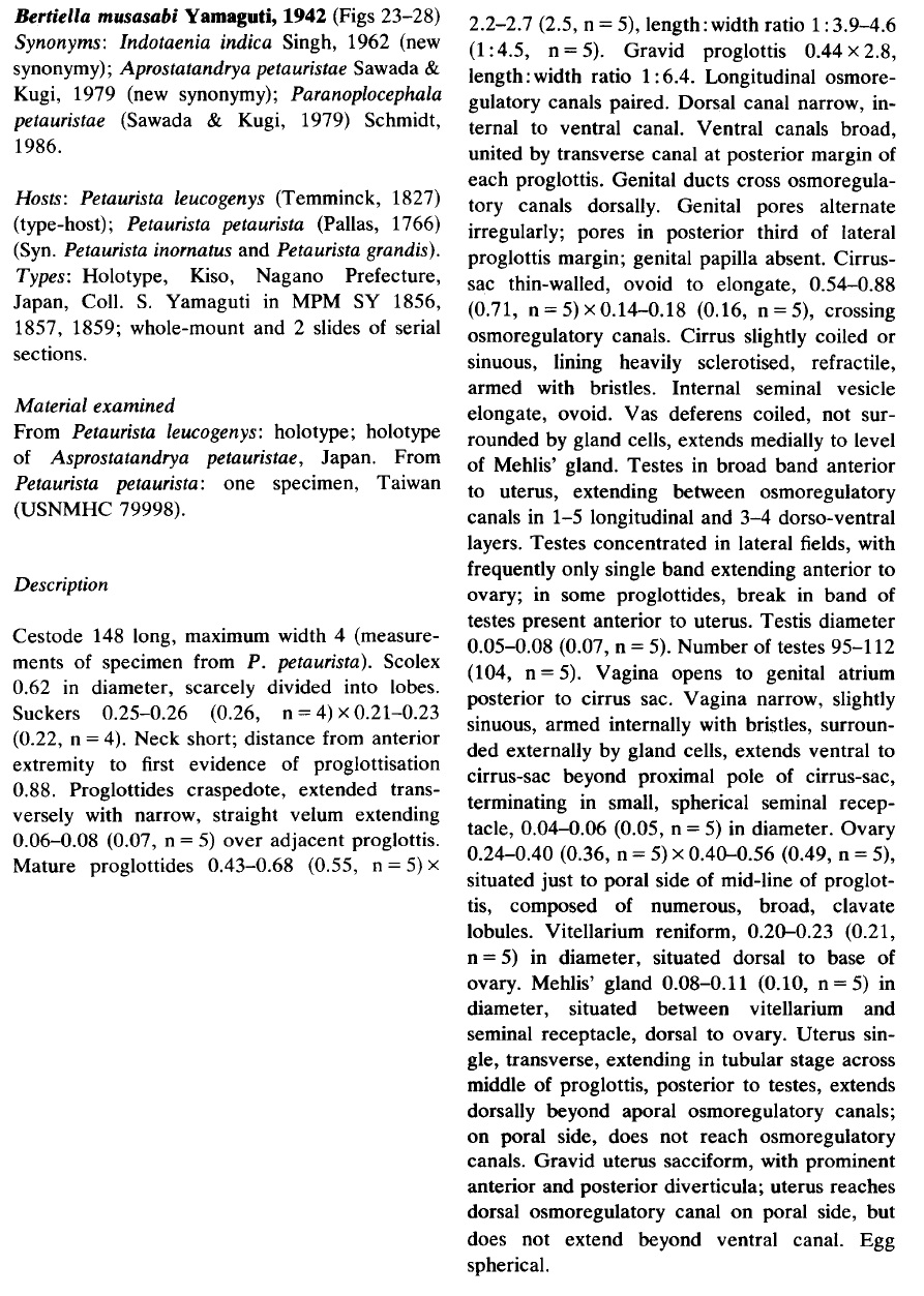 | Synonyms | Indotaenia indica Singh, 1962; Aprostatandrya petauristae Sawada & Kugi, 1979; Paranoplocephala petauristae (Sawada & Kugi, 1979) Schmidt, 1986. |