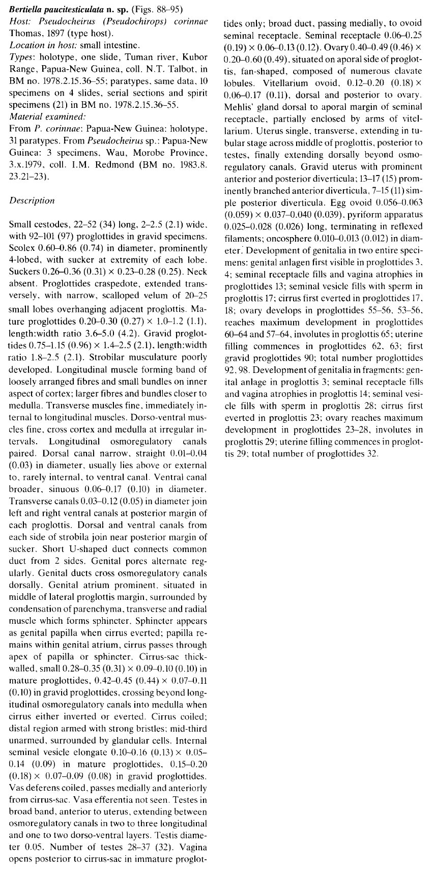Beveridge, I. 1985. The genus Bertiella (Cestoda: Anoplocephalidae) from Australasian mammals: new species, new records and redescriptions. Systematic Parasitology 7: 241-289. (4697) Download PDF |
