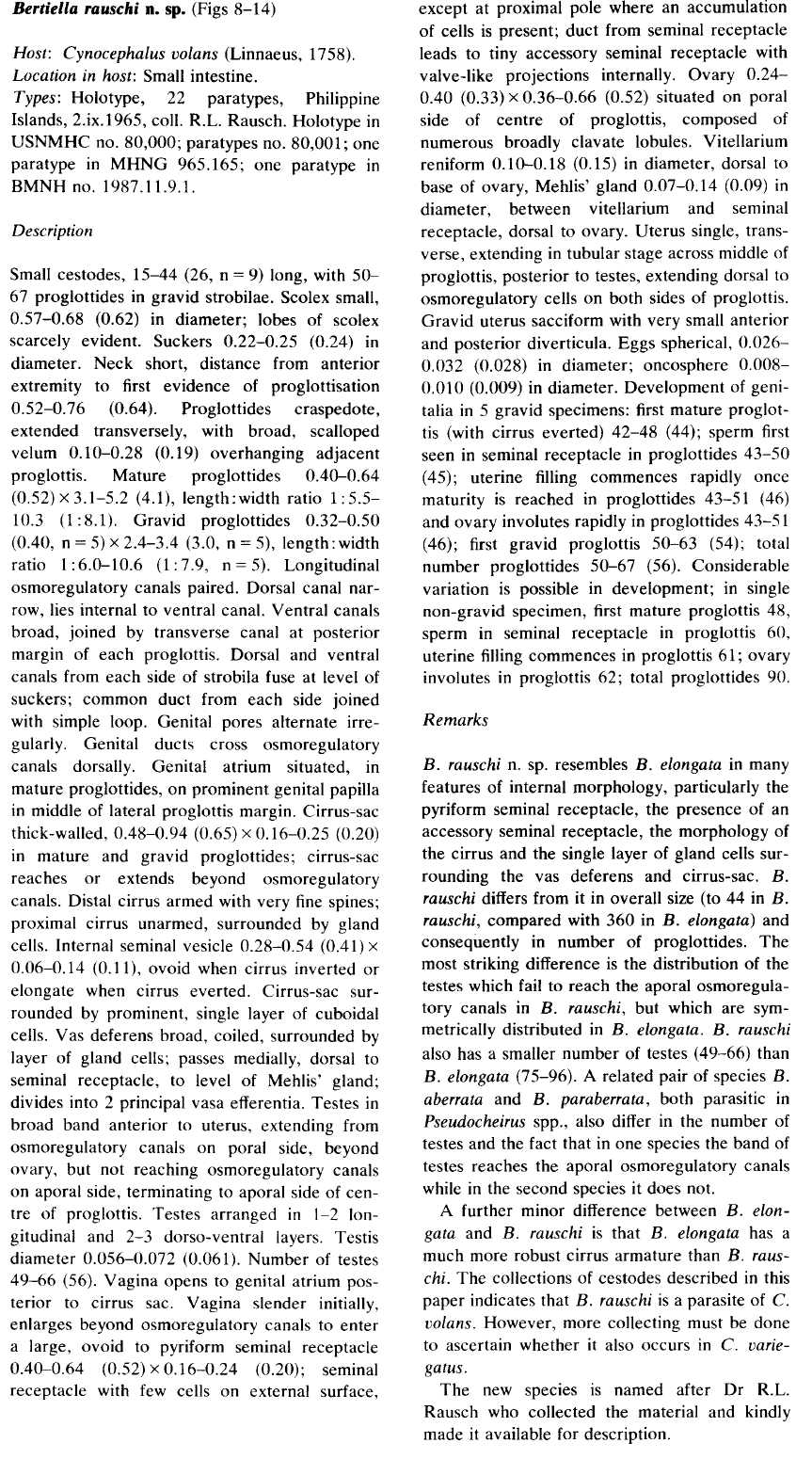 Beveridge, I. 1989. Species of Bertiella (Cestoda: Anoplocephalidae) in dermopterans and squirrels from South-East Asia. Systematic Parasitology 14: 1-15. (4698) Download PDF |