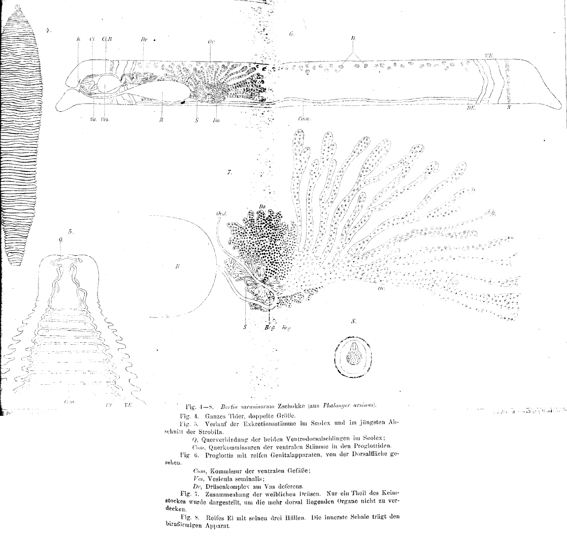 Zschokke, F. 1899. Neue Studien an Cestoden aplacentaler Säugetiere. Zeitschrift für Wissenschaftliche Zoologie 65: 404-445. (4787) Download PDFStiles, C. W & Hassall, A. 1902. Bertiella, new name for the cestode genus Bertia Blanchard, 1891. Science 16: 434. (4700) Download PDF |