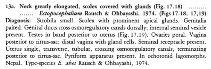 Rausch, R. L. and M. Ohbayashi. 1974. On some anoplocephaline cestodes from pikas, Ochotona spp. (Lagomorpha), in Nepal, with the description of Ectopocephalium abei gen. et sp. n. Journal of Parasitology 60: 596-604. (4966) Download PDF |