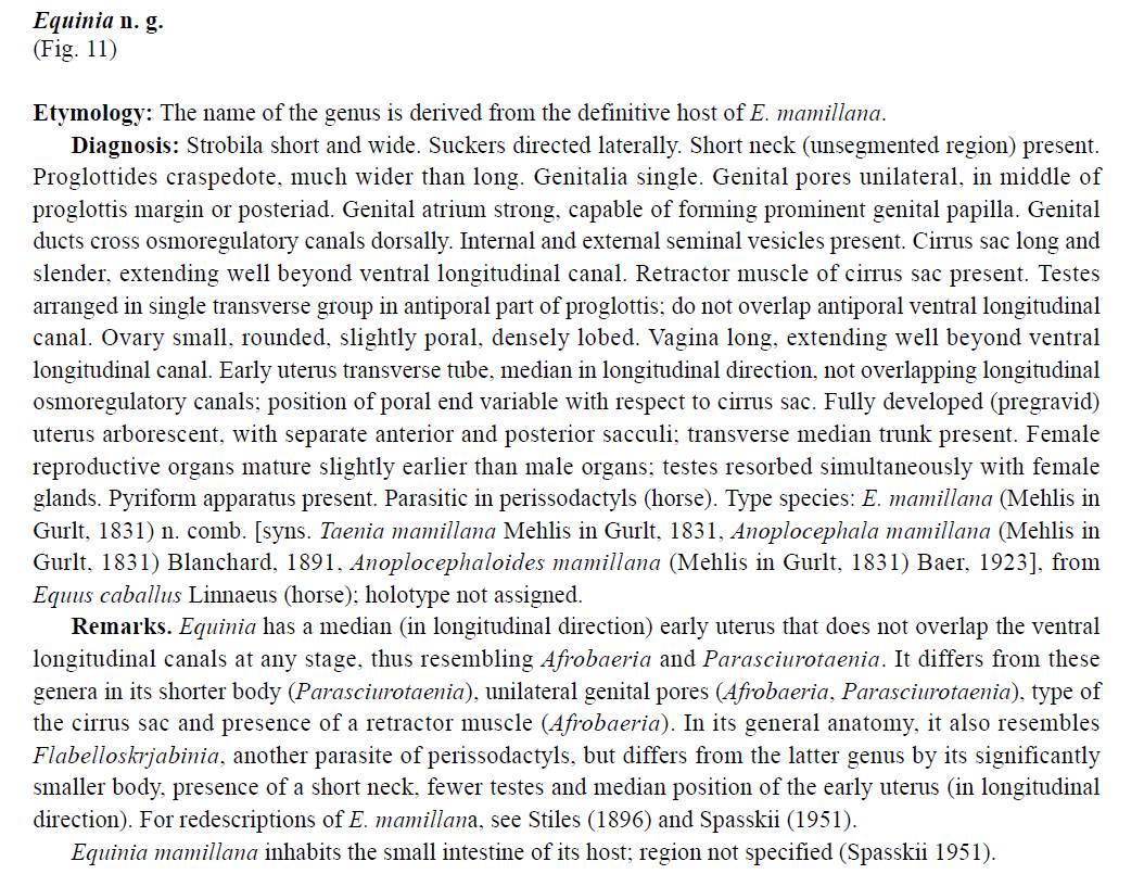 | Synonyms | Taenia mamillana Mehlis in Gurlt, 1831; Anoplocephala mamillana (Mehlis in Gurlt, 1831) Baer, 1927; Anoplocephaloides mamillana (Mehlis in Gurlt, 1831) Baer, 1923 |