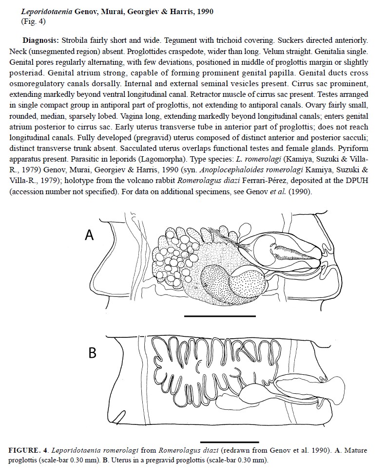 Type Species Leporidotaenia romerolagi (Kamiya, Suzuki & Villa-R., 1979) Genov, Murai, Georgiev & Harris, 1990