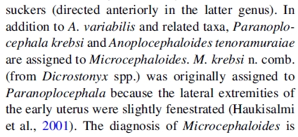 Haukisalmi, V., L. M. Wickström, J. Hantula, and H. Henttonen. 2001. Taxonomy, genetic differentiation and Holarctic biogeography of Paranoplocephala spp. (Cestoda: Anoplocephalidae) in collared lemmings (Dicrostonyx; Arvicolinae). Biological Journal of the Linnean Society 74: 171-196. (4591) Download PDFHaukisalmi, V., L. M. Hardman, M. Hardman, R. L. Rausch, and H. Henttonen. 2008. Molecular systematics of the Holarctic Anoplocephaloides variabilis (Douthitt, 1915) complex, with the proposal of Microcephaloides n. g. (Cestoda: Anoplocephalidae). Systematic Parasitology 70: 15-26. (4592) Download PDF |