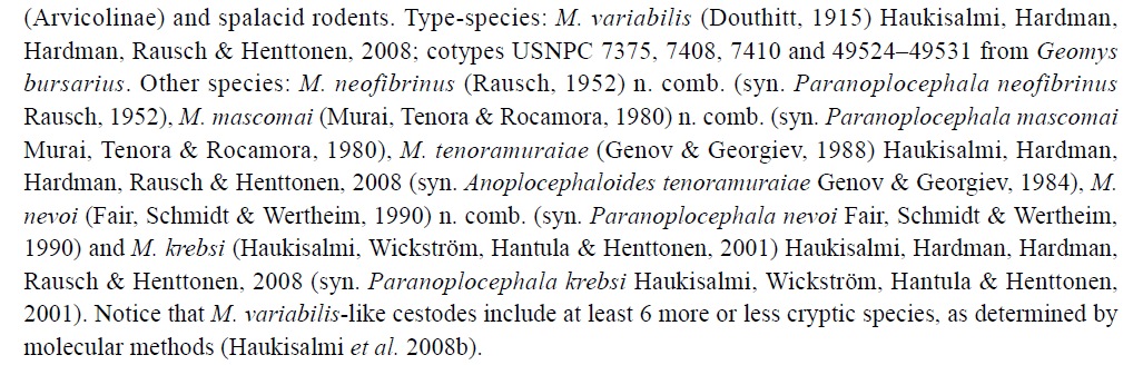 Cyclophyllidea: Anoplocephalidae: Anoplocephalinae
