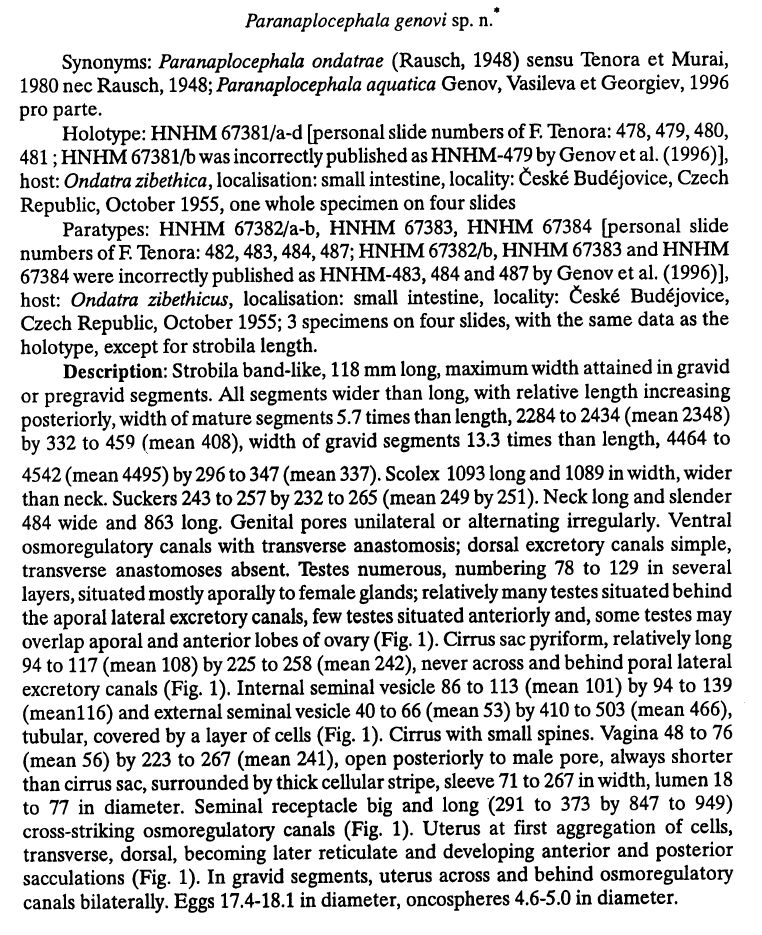 | Valid Name | Rodentocestus aquaticus (Genov, Vasileva & Georgiev, 1996) Haukisalmi, Hardman, Hoberg & Henttonen, 2014 |