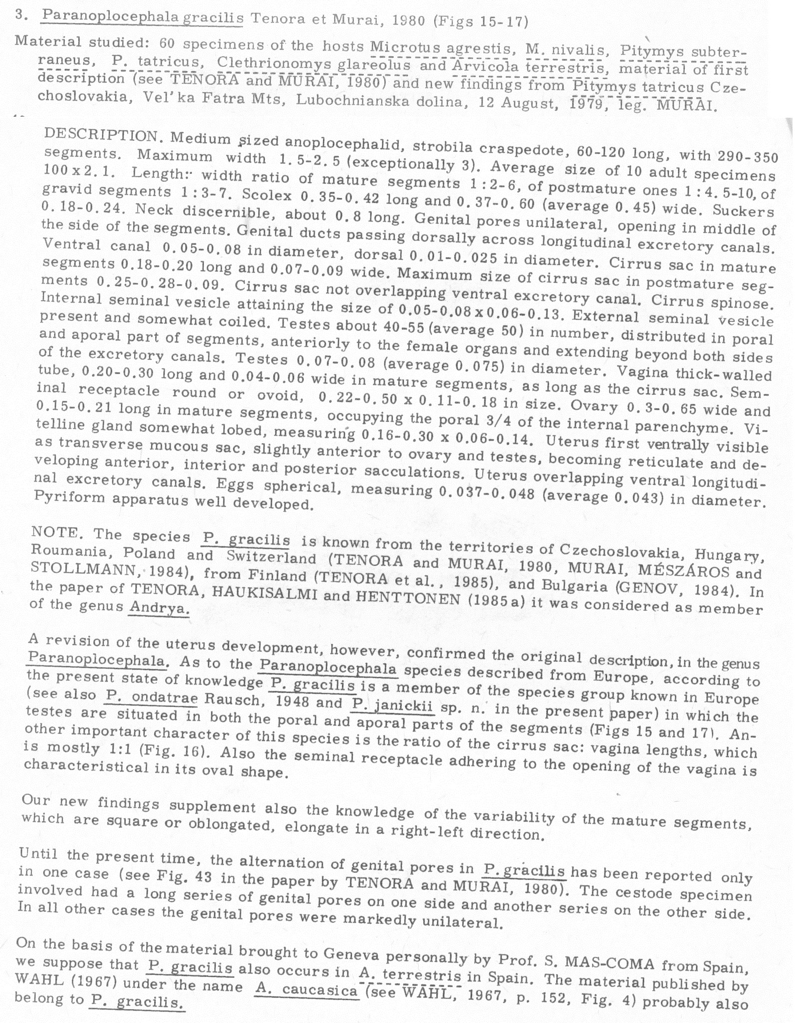 | Valid Name | Eurotaenia gracilis (Tenora & Murai, 1980) Haukisalmi, Hardman, Hoberg & Henttonen, 2014 |