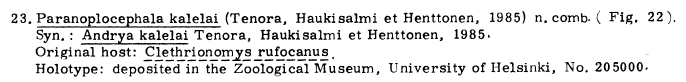 | Synonyms | Andrya kalelai Tenora, Haukisalmi & Henttonen, 1985 |