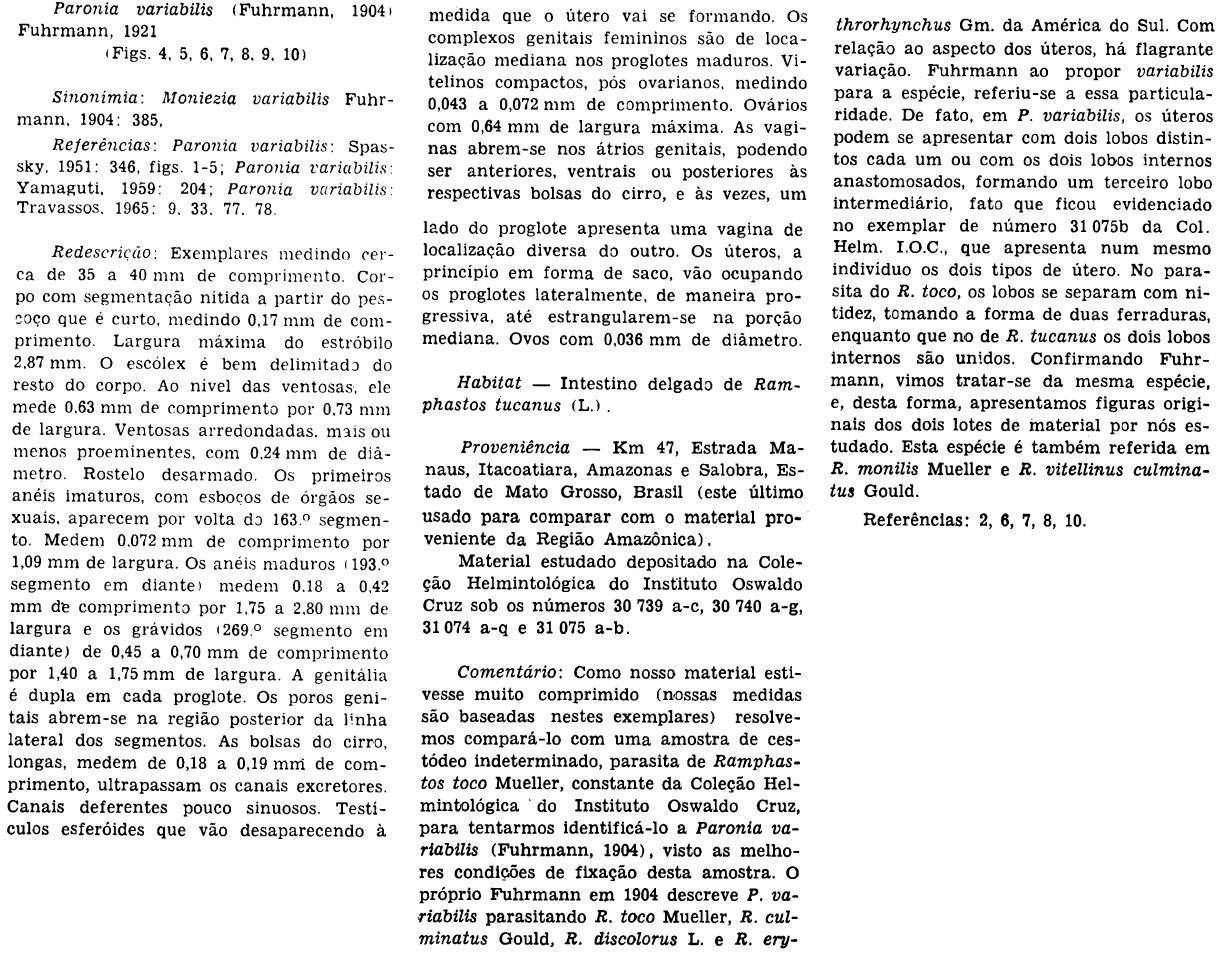 Pinto, R. M. and D. C. Gomes. 1976. Contribuicao ao Conhecimento da Fauna Helmintologica da Regiao Amazonica - Cestodeos. Memorias do Instituto Oswaldo Cruz 74: 53-64. (7449) Download PDF |