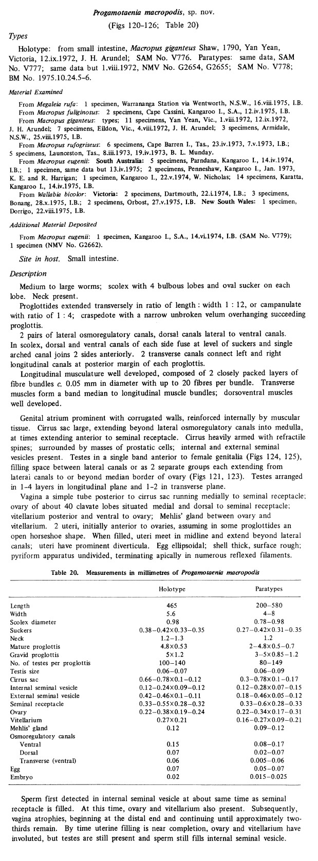 Beveridge, I. 1976. A taxonomic revision of the Anoplocephalidae (Cestoda: Cyclophyllidea) of Australian marsupials. Australian Journal of Zoology, Suppl. Ser. 44: 1-110. (4811) Download PDF |
