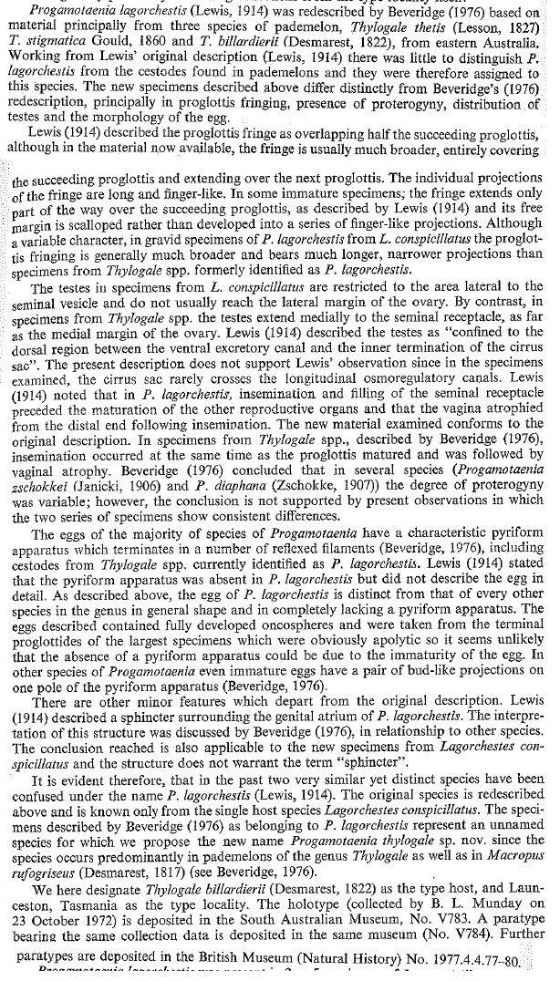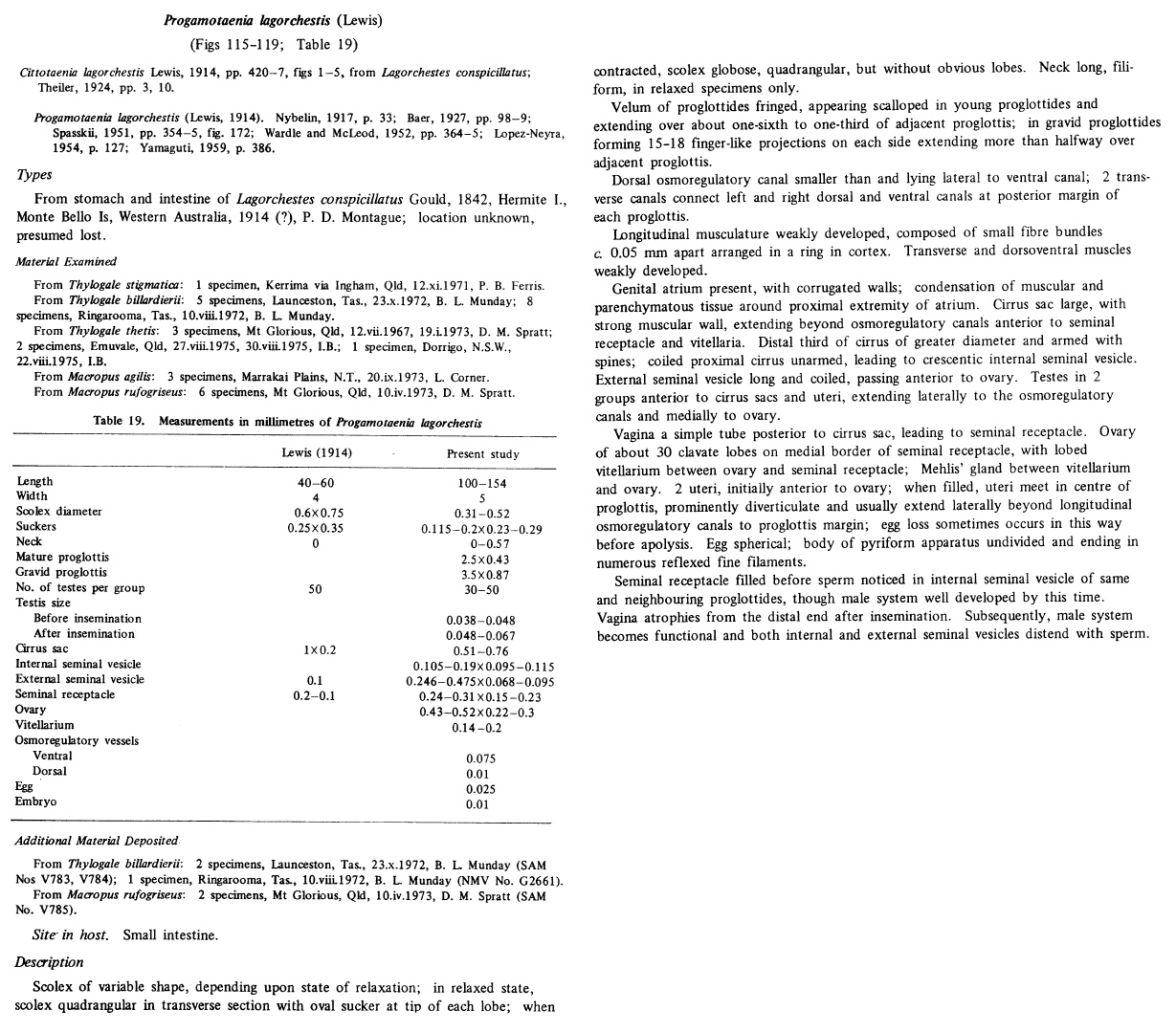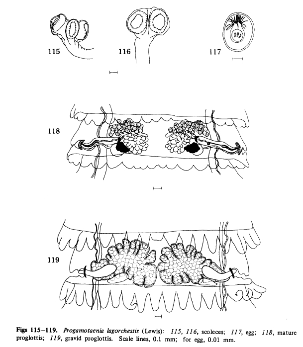 | Synonyms | Progamotaenia lagorchestis (Lewis, 1914) Nybelin, 1917 of Beveridge (1976). |