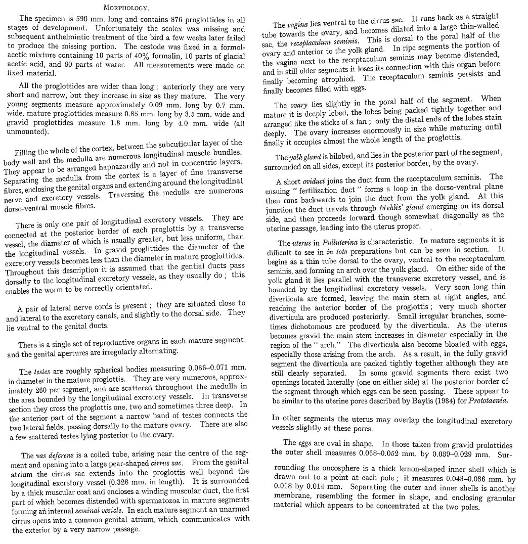 Smithers, S. R. 1954. On a new anoplocephalid cestode, Pulluterina nestoris gen. et sp. nov., from the Kea (Nestor notabilis). Journal of Helminthology 28: 1-8. (5621) Download PDF |