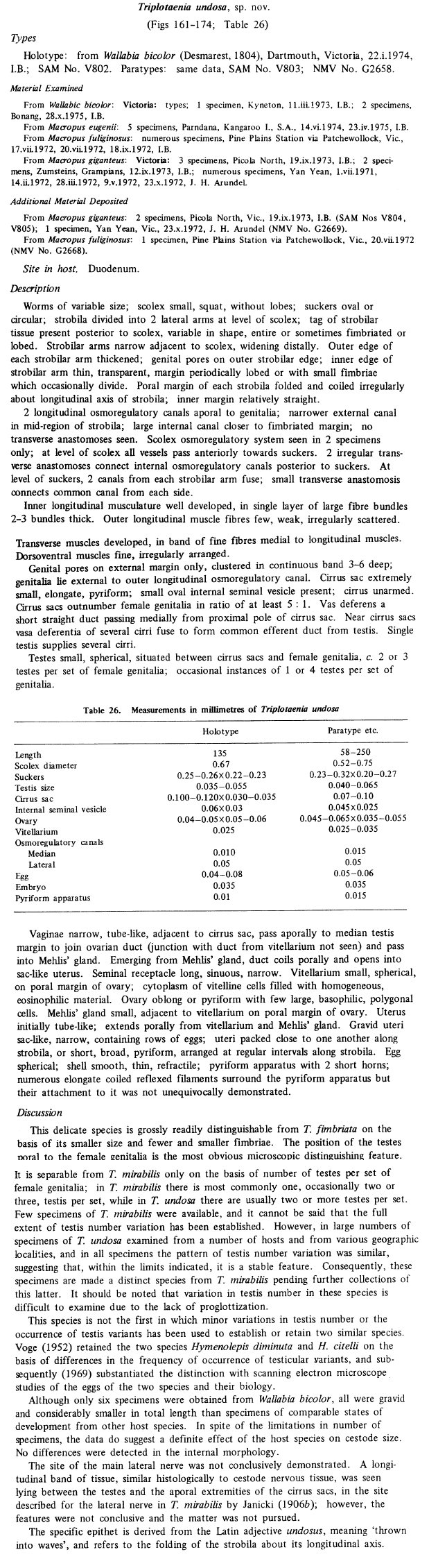 Beveridge, I. 1976. A taxonomic revision of the Anoplocephalidae (Cestoda: Cyclophyllidea) of Australian marsupials. Australian Journal of Zoology, Suppl. Ser. 44: 1-110.