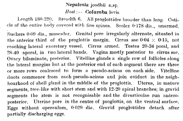 Sharma, K. N. 1943. Note on cestodes collected in Nepal. Indian Veterinary Journal 20: 53-67. (5504) Download PDFYamaguti, S. 1959. Systema Helminthum. Vol. II. The Cestodes of Vertebrates. Keigaku Publishing House, Tokyo, 860 pp. (694) Download PDF |