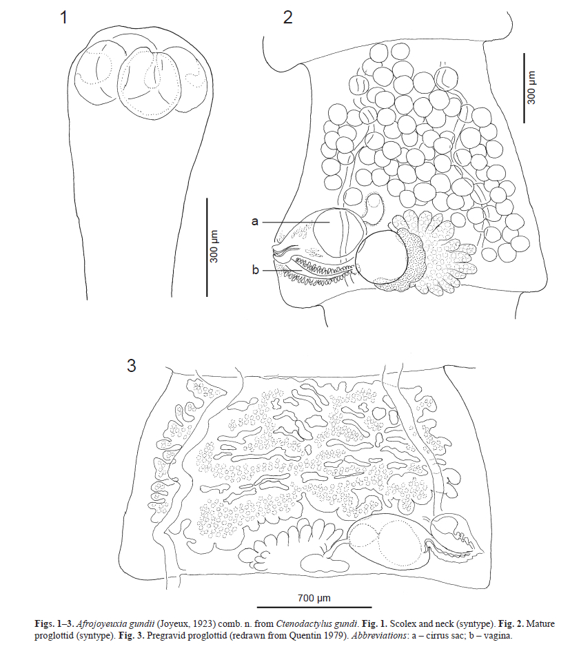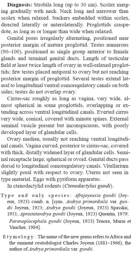 | Valid Name | Afrojoyeuxia gundii (Joyeux, 1923) Haukisalmi, 2013 |