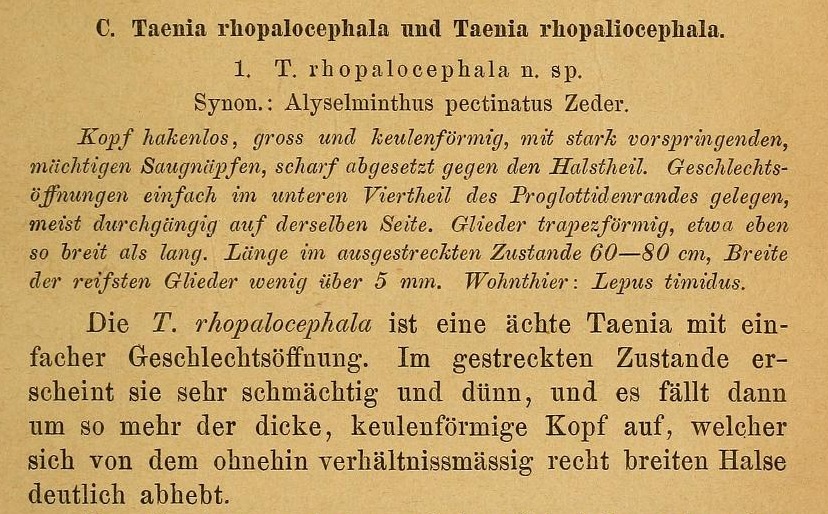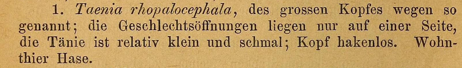 Riehm, G. 1881. Untersuchungen an der Bandwürmern der Hasen und Kanichen. Zeitschrift für die Gesammten Naturwissenschaften. Originalabhandlungen und Berichte 54: 200.