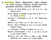 Goeze, J. A. E. 1782. Versuch einer Naturgeschichte der Eingeweidewürmer thierischer Körper. Gedruckt bey Philipp Adam Pape, Blankenburg, 471 pp & 44 plat pp. (4166) Download PDFZeder, J.G.H. 1803. Anleitung zur Naturgeschichte der Eingeweidewürmer. Für Aerzte, Thieraerzte und Naturforscher. Komptoir der Zeitung, Bamberg, 432 pp. (714) Download PDF |