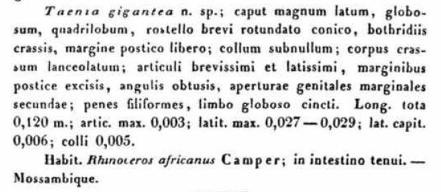 Peters, W. 1856. Ueber eine neue durch ihre riesige Grösse ausgezeichnete Taenia. Monatsberichte der Königlichen Preussischen Akademie der Wissenschaften zu Berlin : 469. (4750) Download PDF |