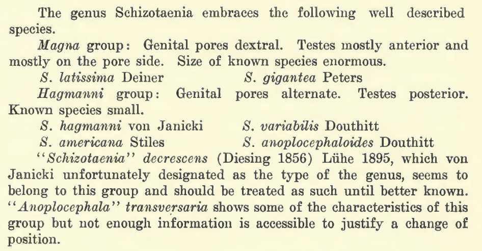 Synonyms Taenia gigantea Peters, 1856; Plagiotaenia gigantea (Peters, 1856) Peters, 1871