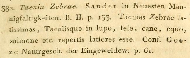 Rudolphi, C. A. 1808. Entozoorum, sive vermium intestinalium. Historia naturalis. Volumen I. Sumtibus Tabernae Librariae et Artium, Amstelaedami, 527 pp. (4751) Download PDF |