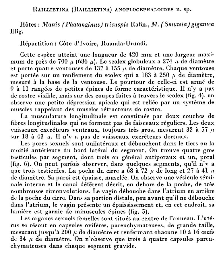 Baer, J. G. and A. Fain. 1955. Les cestodes des pangolins. Bulletin de le Société Neuchâteloise des Sciences Naturelles 78: 37-52. (2800) Download PDF |