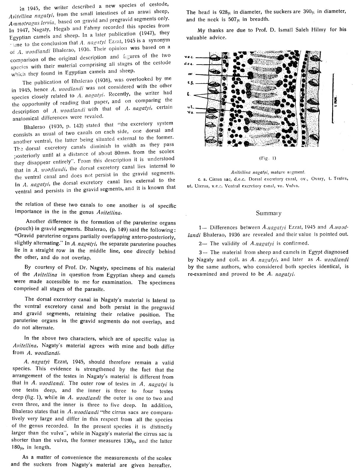 Ezzat, M. A. E. 1951. On the validity of Avitellina nagatyi Ezzat, 1945. The Journal of the Egyptian Medical Association 34: 206-209. (5738) Download PDF |