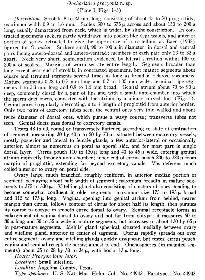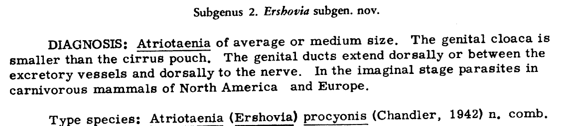 Synonyms Oochoristica procyonis Chandler, 1942; Atriotaenia (Ershovia) procyonis (Chandler, 1942) Spasskii, 1951