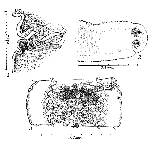 Gallati, W. W. 1959. Life history, morphology and taxonomy of Atriotaenia (Ershovia) procyonis (Cestoda: Linstowiidae), a parasite of the raccoon. Journal of Parasitology 45(4): 363-377.