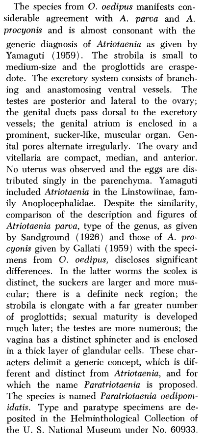 Type Species Paratriotaenia oedipomidatis Stunkard, 1965