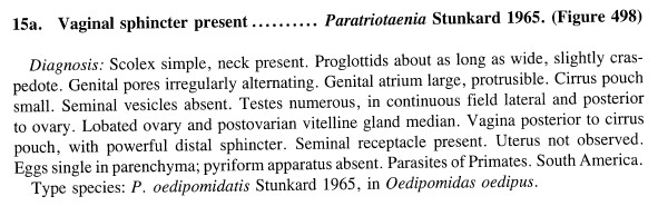 Stunkard, H. W. 1965. Paratriotaenia oedipomidatis gen. et sp. n. (Cestoda), from a marmoset. Journal of Parasitology 51: 545-551.