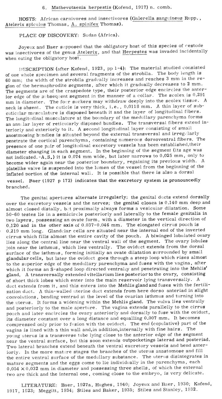 Kofend, L. 1917. Cestoden aus Säugetieren und aus Agama colonorum. Anzeiger Kaiserliche Akademie der Wissenschaften in Wien. Mathematisch -Naturwissenschaftliche Classe 54: 229-231. (4745) Download PDFSpasskii, A. A. 1951. Anoplocefalyaty - lentochnye gel'minty domashnyh i dikih zhivotnyh [Anoplocephalate tapeworms of domestic and wild animals]. Osnovy Cestodologii, Vol. 1. K. I. Skrjabin (ed). Izdatel'stvo Akademii Nauk SSSR, Moscow, 735 pp. (2641) Download PDF |