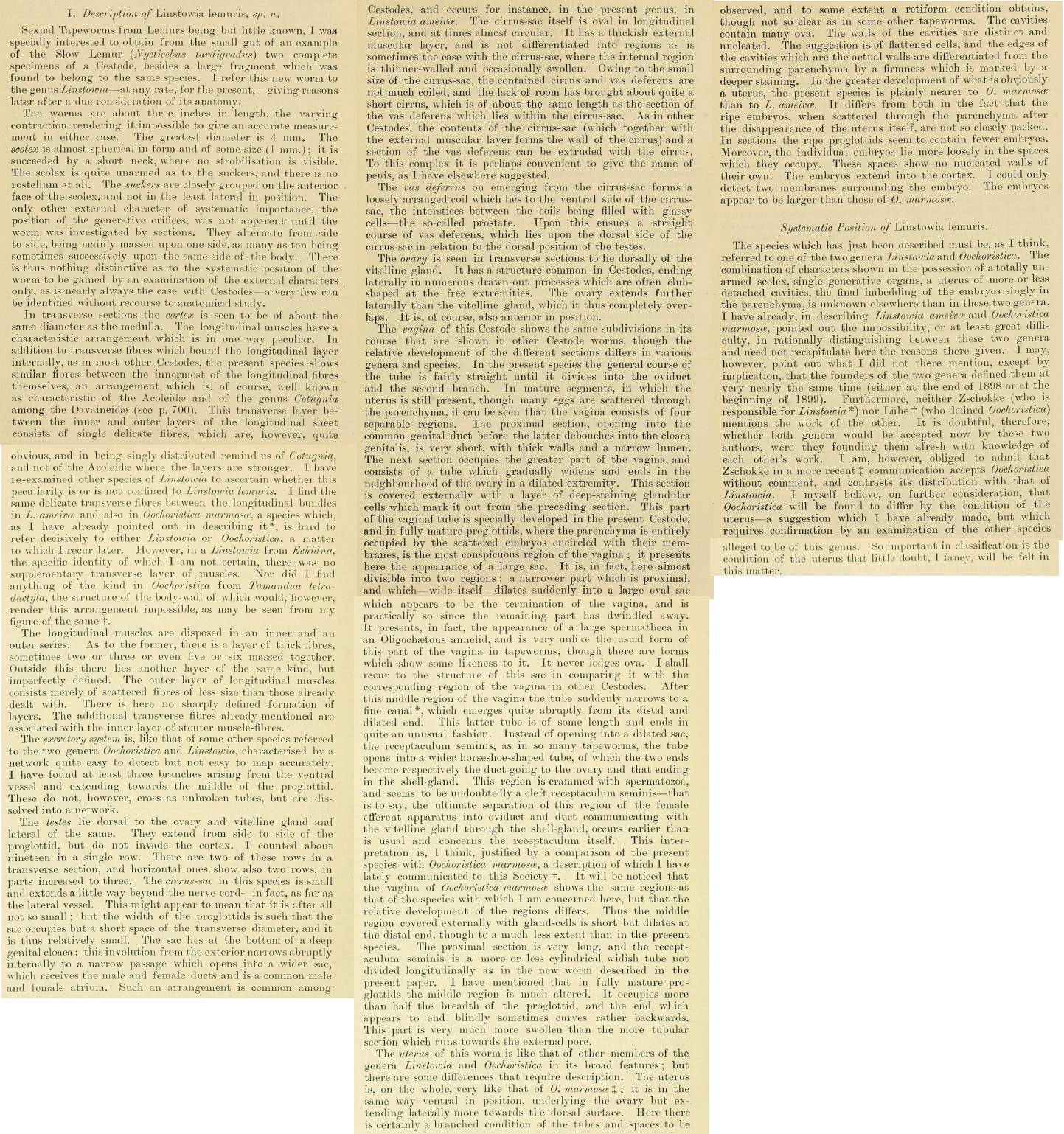 | Synonyms | Linstowia lemuris Beddard, 1916; Oochoristica lemuris (Beddard, 1916) Baer, 1926 |