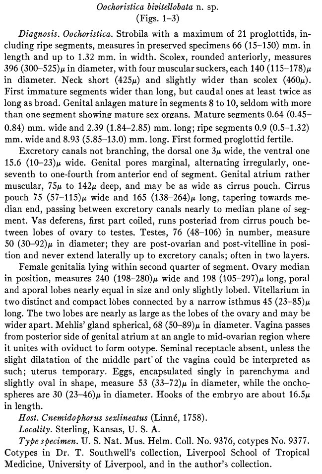 | Type Material | U. S. Nat. Mus. Helm. Coll. No. 9376, cotypes No. 9377. Cotypes in Dr. T. Southwell's collection, Liverpool School of Tropical Medicine, University of Liverpool, and in the author's collection. |