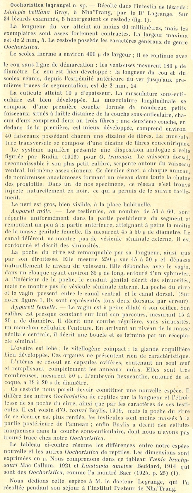 Joyeux, C. and E. Houdemer. 1927. Recherches sur la faune helminthologique de l'Indochine (cestodes et trematodes). Annales de Parasitologie Humaine et Comparee 5(4): 289-309. (5413) Download PDF |