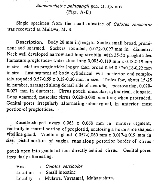 Synonyms | Semenochetos paingangii Palladwar & Kalyankar, 1989 |