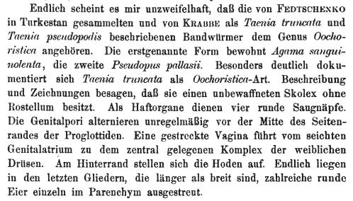 | Synonyms | Taenia truncata Krabbe, 1879; Oochoristica agamae Baylis, 1919; Oochoristica africana Malan, 1939; Oochoristica africana ookispensis Malan, 1939 |
