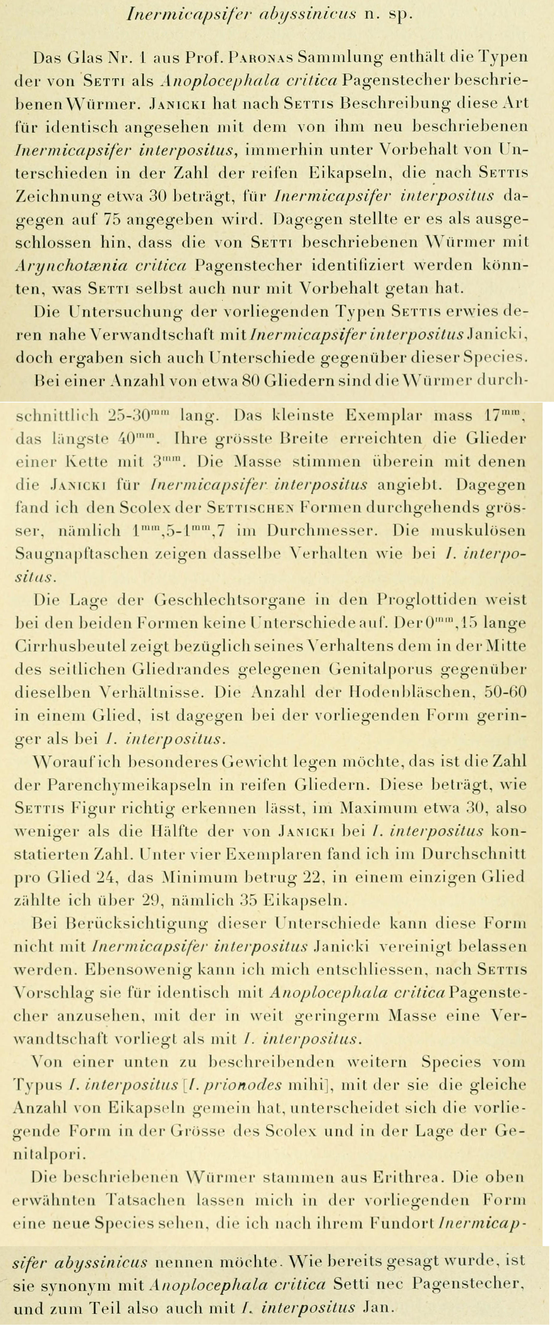 | Scientific Name Notes | Status according to Spasskii (1951). A junior synonym of Inermicapsifer interpositus Janicki, 1910 according to Baer (1927). |
