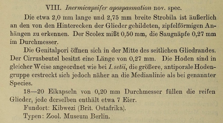 | Synonyms | Inermicapsifer parvulus Bischoff, 1912 |