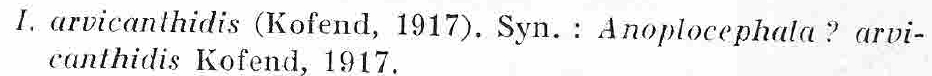| Synonyms | Anoplocephala arvicanthidis Kofend, 1917 |