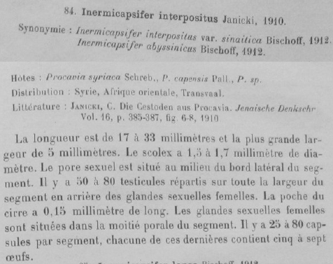 Janicki, C. 1910. Die Cestoden aus Procavia. Jenaische Denkschriften 16: 373-396. (4653) Download PDF |