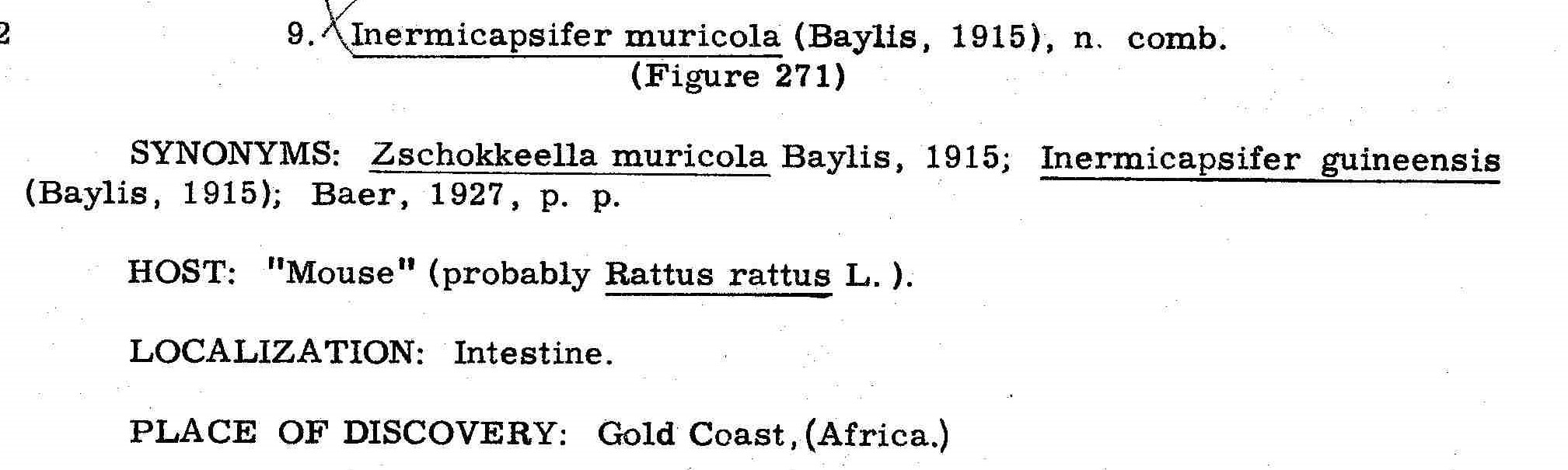 | Host Notes | Host given as: "a rat (probably Epimys rattus)". |