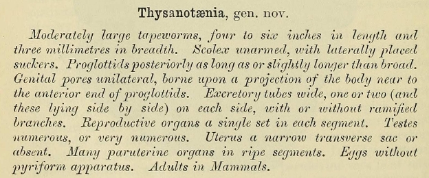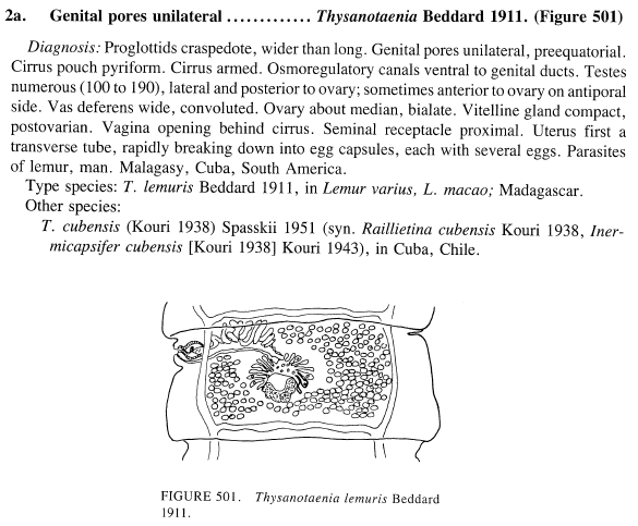 | Type Species | Thysanotaenia lemuris Beddard, 1911 |