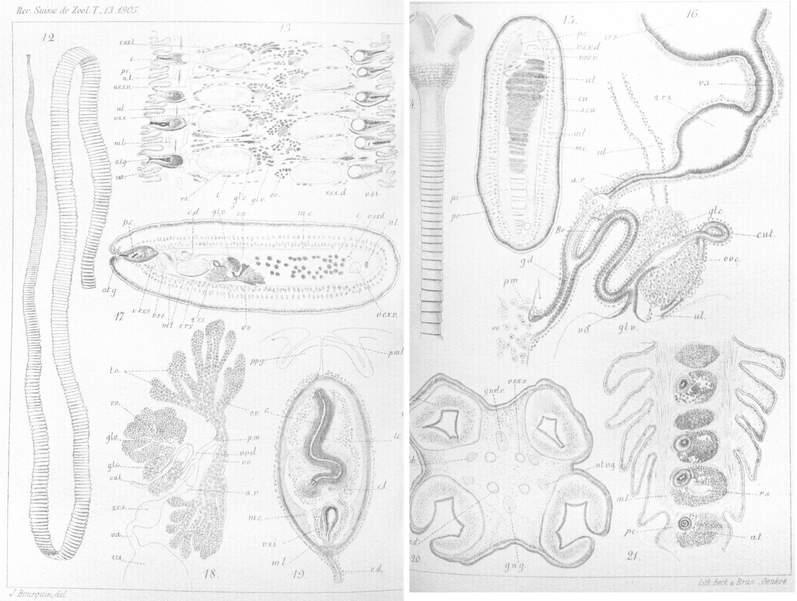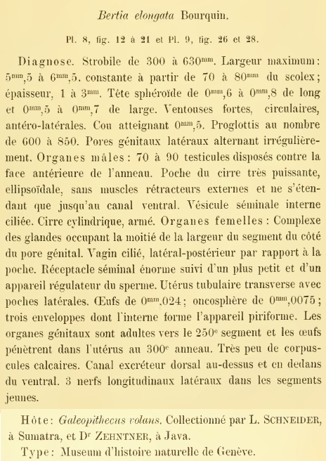 Bourquin, J. 1905. Cestodes de Mammifères. Le genre Bertia. Revue Suisse de Zoologie 13: 415-506.