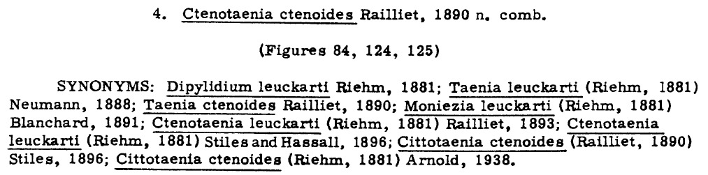 | Synonyms | Dipylidium leuckarti Riehm, 1881; Cittotaenia ctenoides (Railliet, 1890) Stiles, 1896; Ctenotaenia ctenoides (Railliet, 1890) Spasskii, 1951; Mosgovoyia ctenoides (Railliet, 1890) Beveridge, 1978; Cittotaenia ctenoides (Railliet, 1890) Stiles, 1896 |