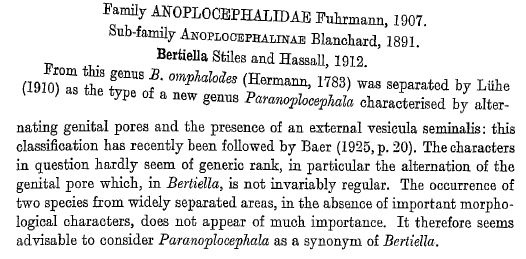 Hermann, J. 1783. Helminthologische Bemerkungen. Der Naturforscher 19: 31-59. (4753) Download PDFMeggitt, F. J. 1927. Report on a collection of Cestoda, mainly from Egypt. Part I. Families Anoplocephalidae, Davaineidae. Parasitology 19: 314-327. (2908) Download PDF |