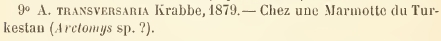 | Synonyms | Taenia transversaria Krabbe, 1879; Anoplocephaloides transversaria (Krabbe, 1879) Baer, 1923; Paranoplocephala transversaria (Krabbe, 1879) Baer, 1927; Sciurotaenia transversaria (Krabbe, 1879) Haukisalmi, 2009 |