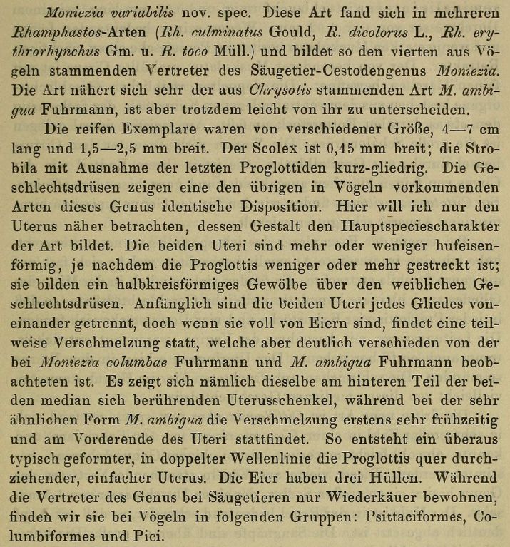 Fuhrmann, O. 1904. Neue Anoplocephaliden der Vögel. Zoologischer Anzeiger 27: 384-388. (4906) Download PDF |