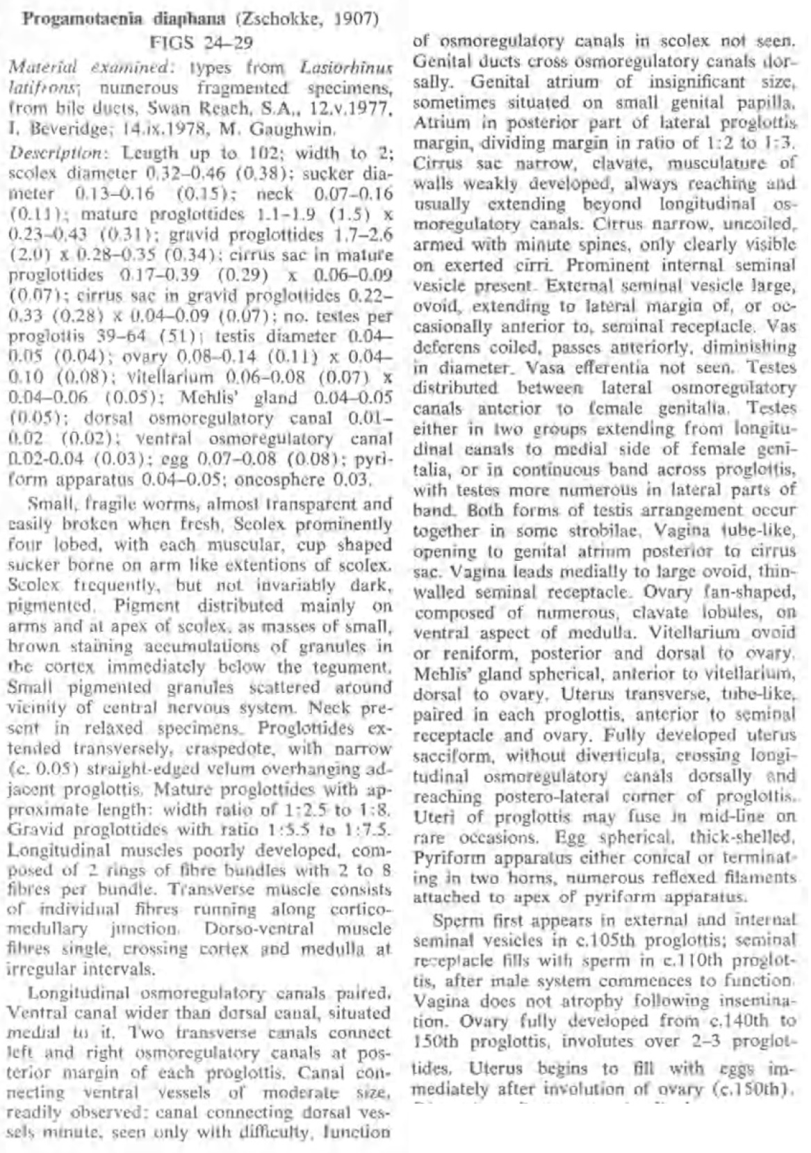 Beveridge, I. 1980. Progamotaenia Nybelin (Cestoda: Anoplocephalidae): new species, redescriptions and new host records. Transactions of the Royal Society of South Australia 104: 67-79. (5114) Download PDF |