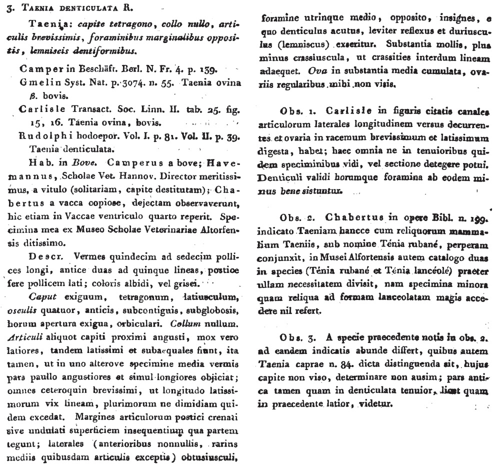 Rudolphi, C. A. 1810. Entozoorum, sive vermium intestinalium. Historia naturalis. Volumen II, Part II. Sumptibus Tabernae Librariae et Artium, Amstelaedami, 386 pp. (4735) Download PDFBlanchard, R. 1891. Notices helminthologiques (deuxième série). Mémoires de la Société Zoologique de France 4: 420-466. (4633) Download PDF |
